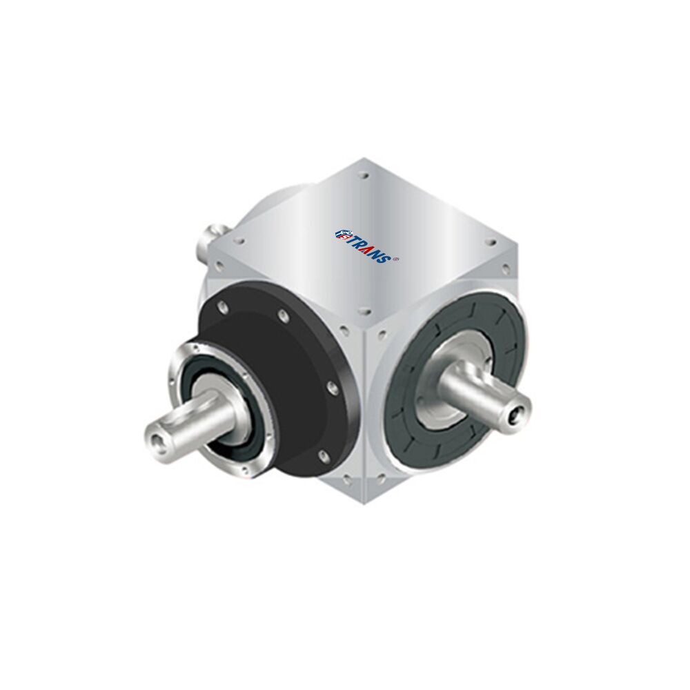 The TRANS AT-L series speed reducer is a kind of right angle gearbox that belongs to the spiral bevel gearbox that features one input shaft and two output shafts. They are widely used in servo applications and power transmission solutions.